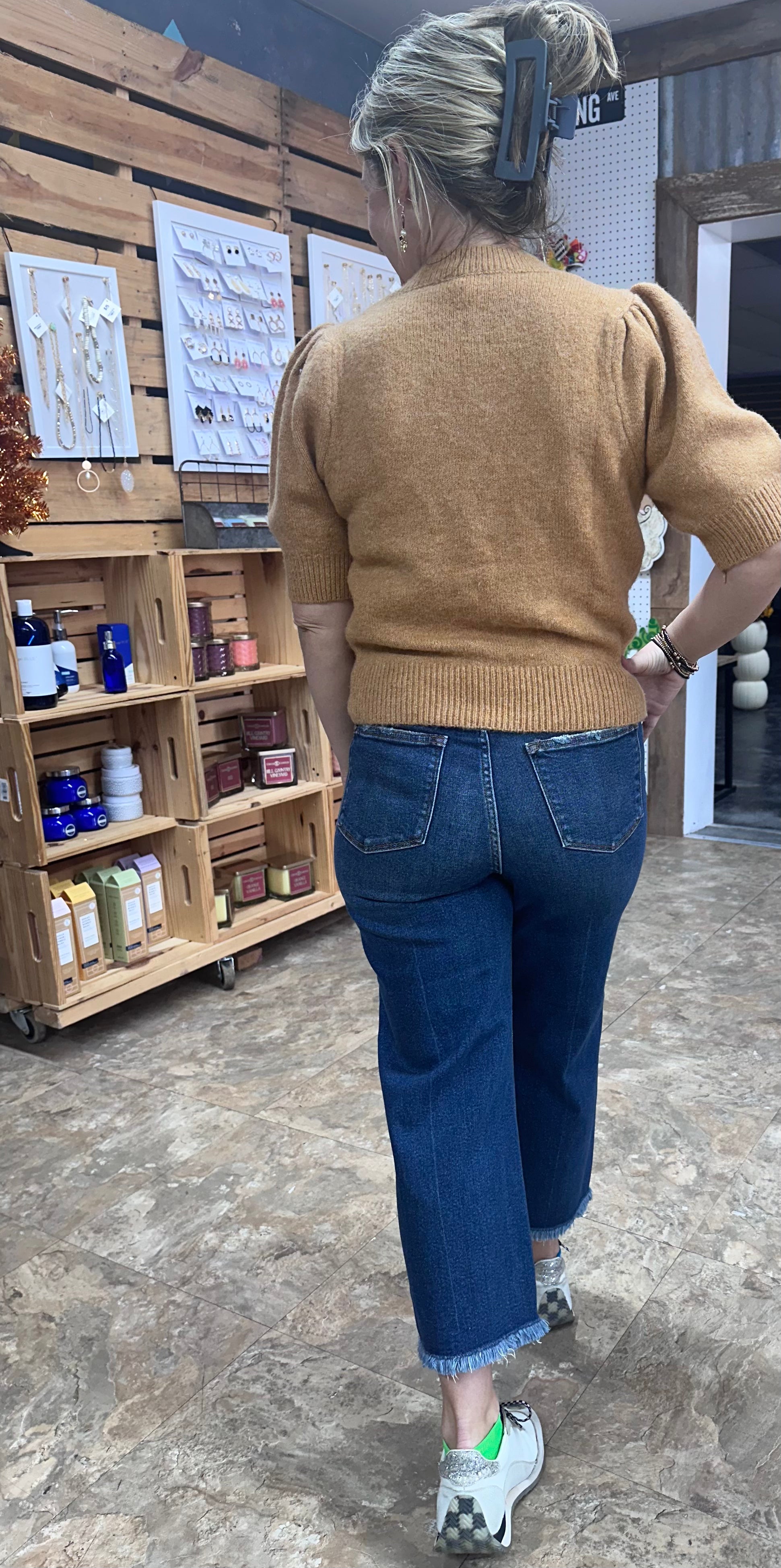 High Waist Button Fly Destroy Hem Crop Wide