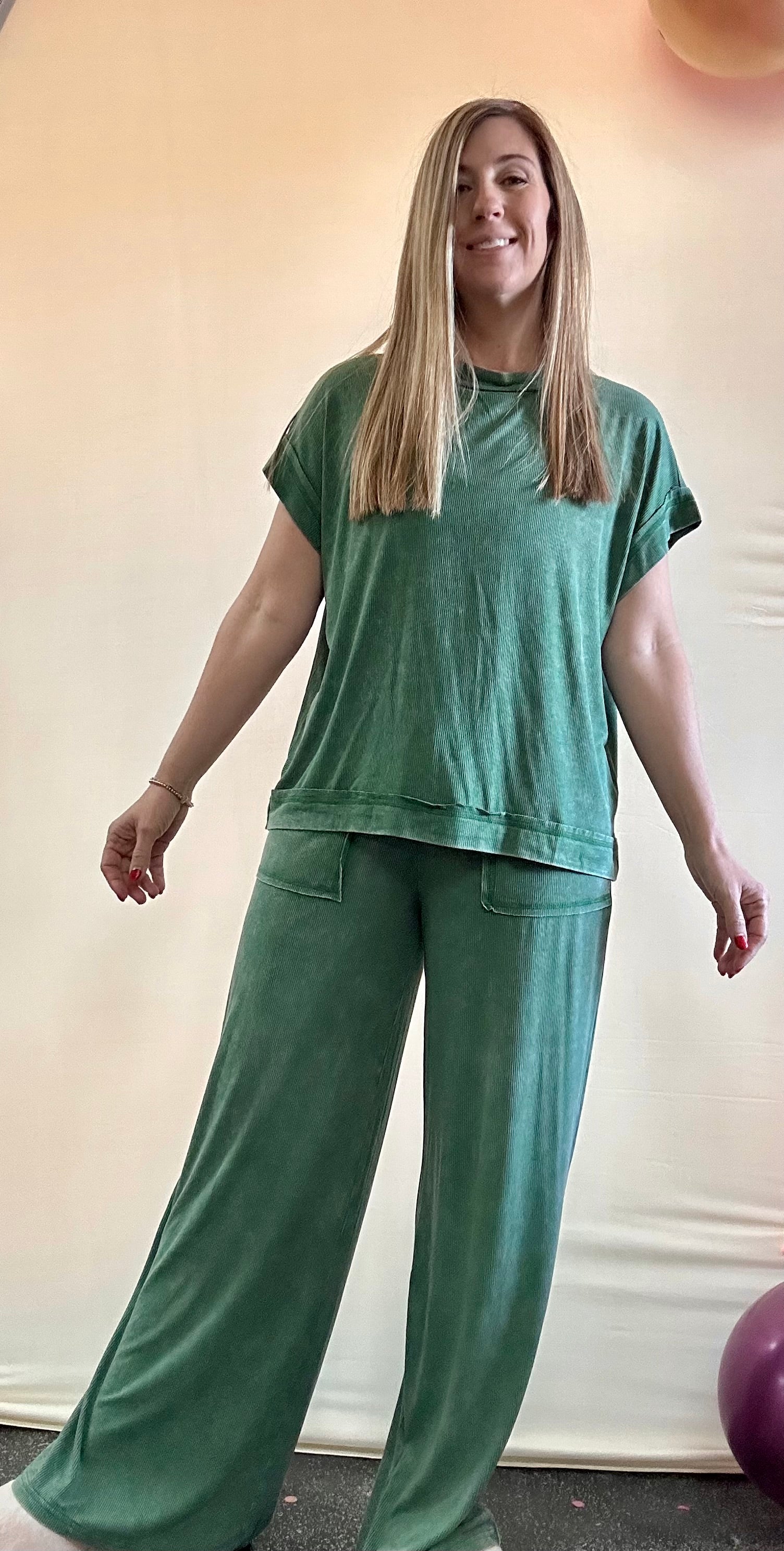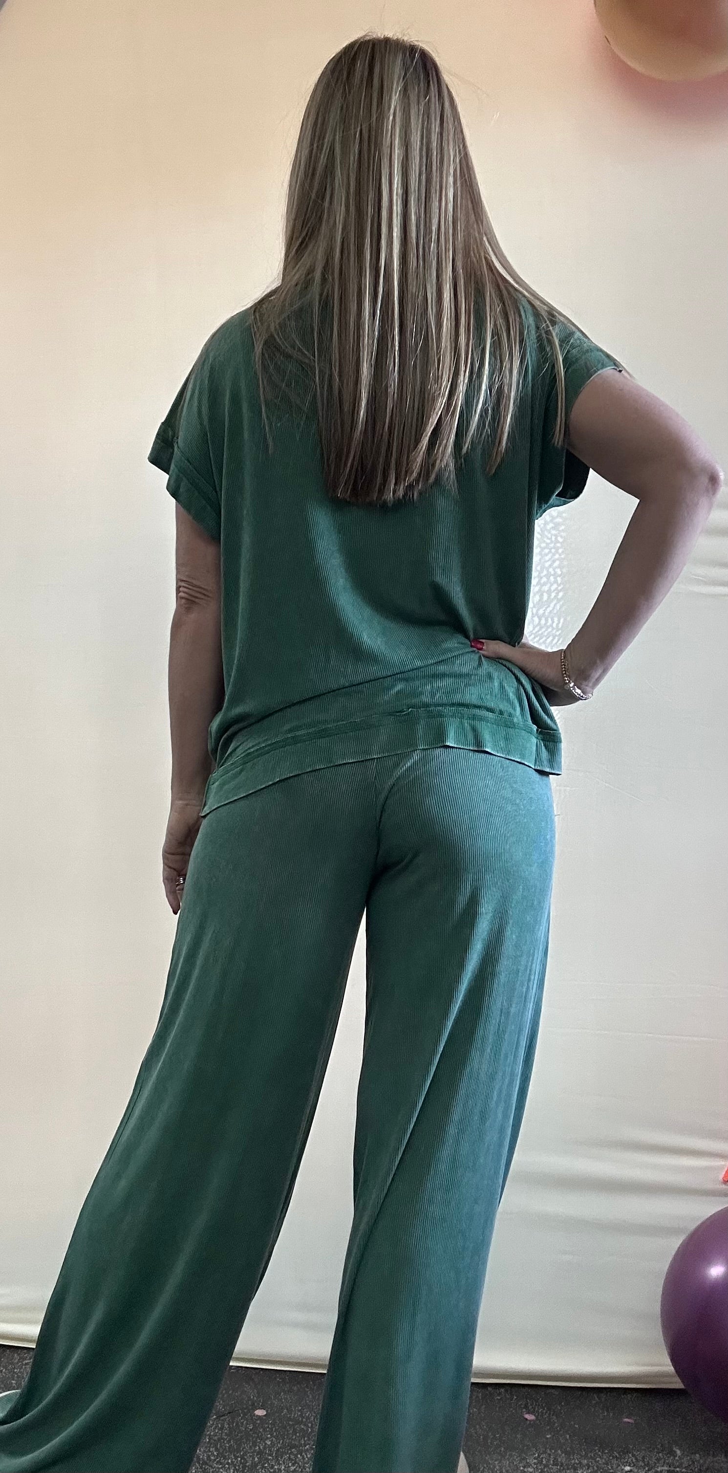 Slip into ultimate comfort with this ribbed acid wash rayon set that's giving effortless cool-girl vibes. The matching top and pants combo features that coveted vintage acid wash finish, with each piece boasting its own unique color variations—because who wants to blend in? The top hits at 23" with a 43" bust, while the pants sit at a 25" waist with a 29" inseam (based on small sizing). Perfect for lazy days, coffee runs, or pretending you just threw this together when you absolutely didn't. Rayon's silky-smooth feel means you'll never want to take it off.