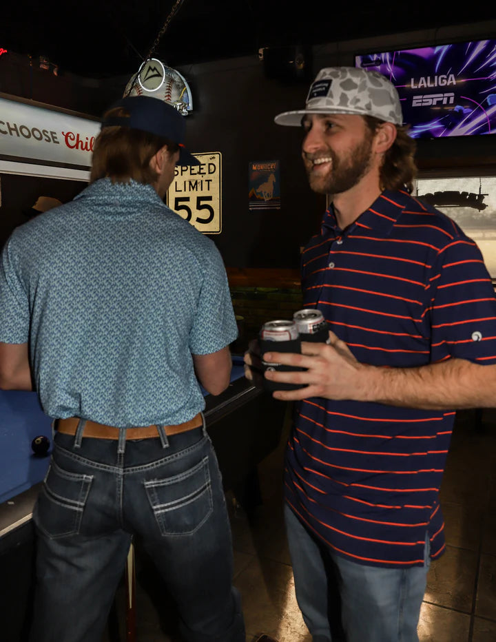 From sun-scorched fairways to family cookouts at the ranch, The Apex Stripe Polo delivers laid-back style with performance in its DNA. Designed by College & Harbin for guys who live for early tee times and late campfire nights, this polo pairs classic stripes with a rugged navy palette that nods to the dirt roads of Texas and the canyon rock of Cripple Creek.