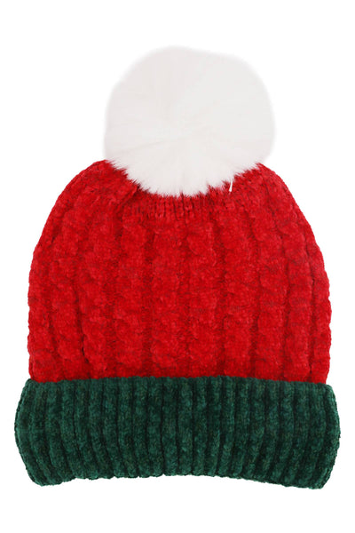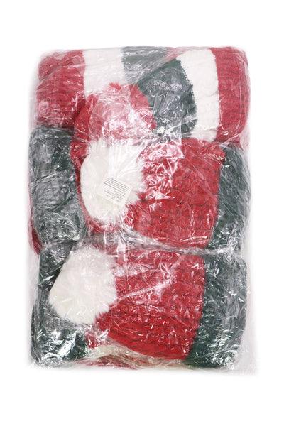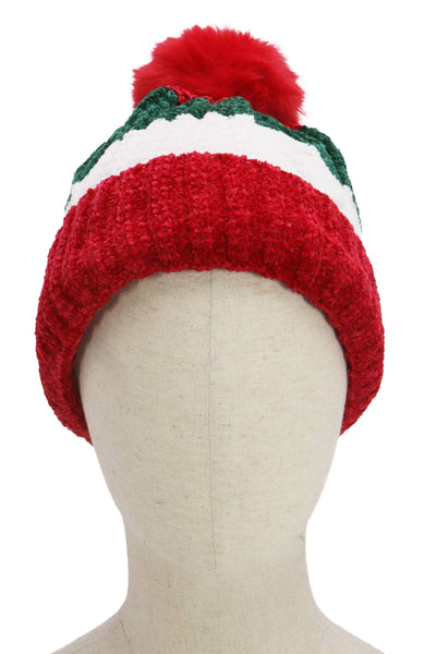Green Red White Stripe Chenille Cable Knitted Sherpa Fleece Lined Fuzzy Faux Fur Pom Pom Cuffed Trooper Beanie -Dimensions: 11" * 7" * 1" (Measured laying flat on surface) -Pack Dimensions: 15.5" * 10.5" * 3" ) -100% Acrylic -CA Prop 65 Advisory -Packaging Details: Individually packed in clear pouch, then as whole in clear OPP bag.